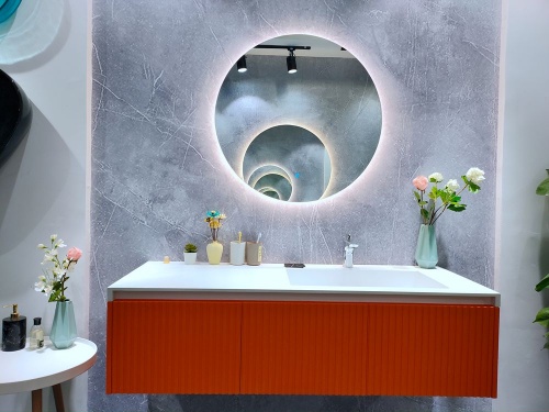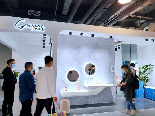創品高衛浴這次主題是以彩色衛浴空間整體衛浴為主的產品系列,原材料是精選優質的綺美石與與原礦石為原料,色彩多樣的浴室柜、浴缸、立柱盆、臺上盆等產品,吸引大量觀眾駐足觀看,紛紛拿下手機拍下美照,刷爆朋友圈。